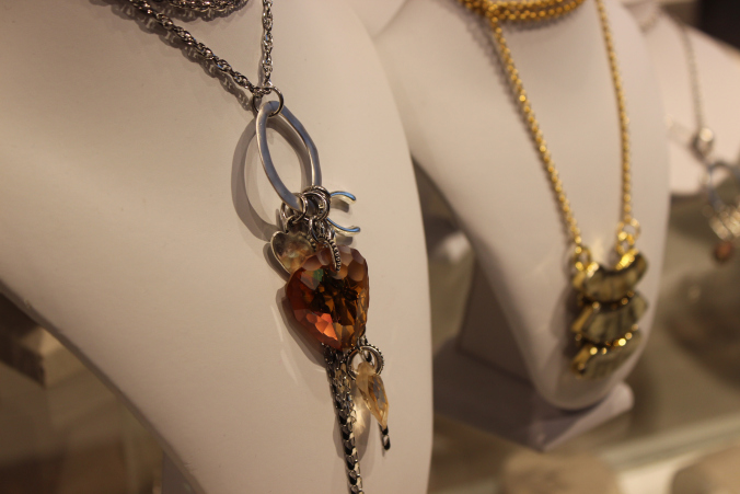 So naturally, I gravitated to this lovely giant tier tray adorned with champagne flutes. Yup, I love champagne. I also love that this store has a catwalk built into it!! How smart is that?! Gorgeous models strutted their fall looks down the curvy lane, while women shopped until they dropped!